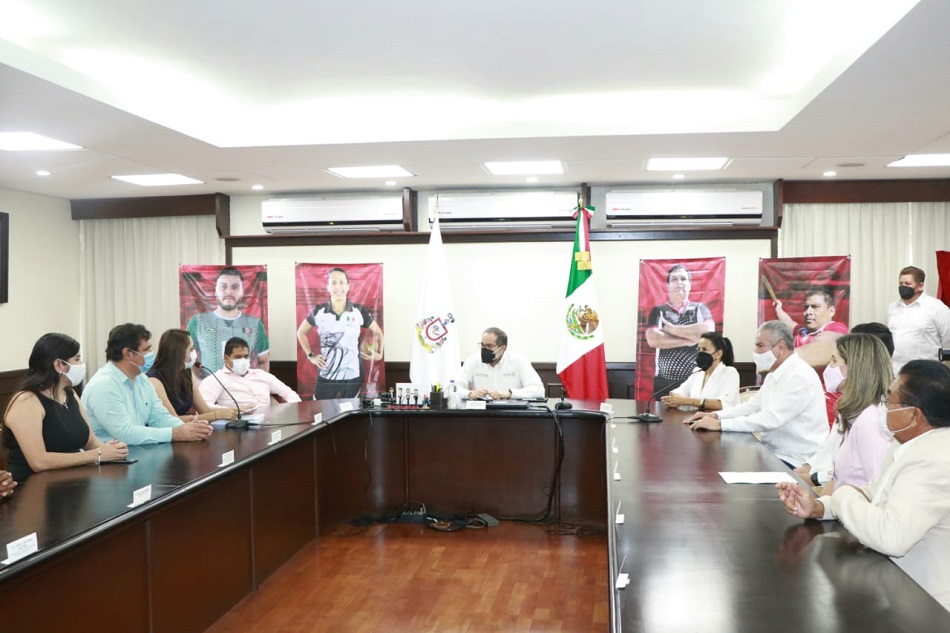 Acompañado por el secretario de Educación, Jaime Flores Merlo, felicitó a deportistas, entrenadores y promotores deportivos que desde su competencia -dijo- se convierten en modelos a seguir.