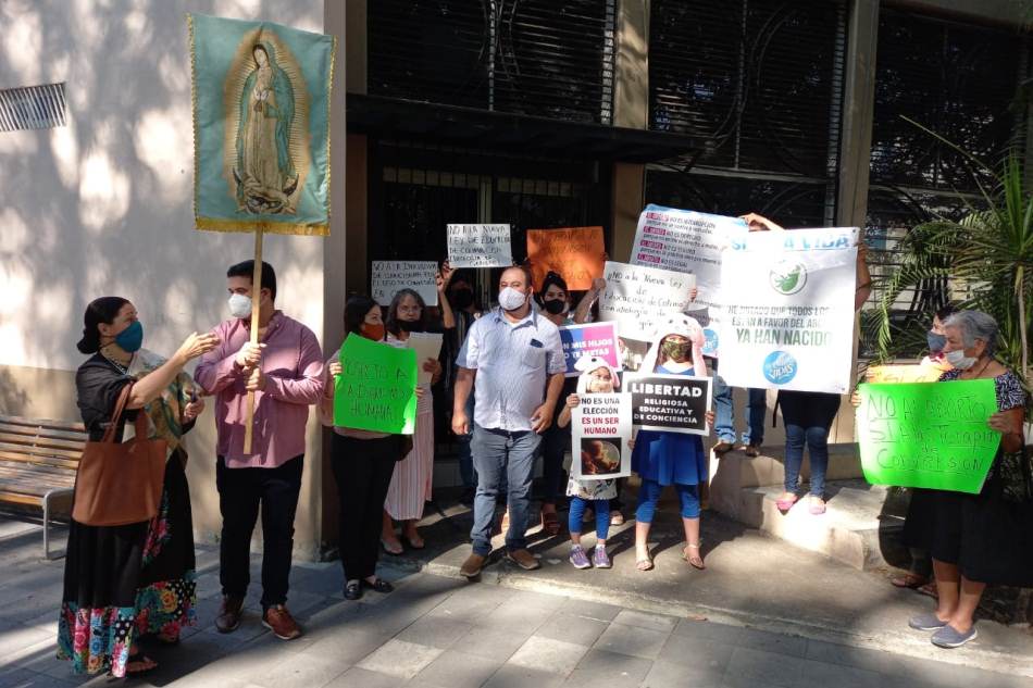 Integrantes del Frente Nacional por la Familia se manifestaron afuera del Congreso del estado en donde pidieron a los diputados se analice la iniciativa 494 sobre la reforma de ley con proyecto de decreto, que Previene, Combate y Elimina la Discriminación y la Ley de Salud del estado de Colima.
