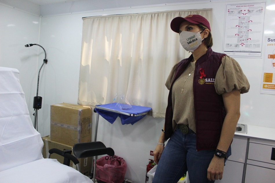 La secretaria de Salud y Bienestar Social del Gobierno del Estado, Leticia Guadalupe Delgado Carrillo, entregó equipo e instrumental médico, así como materiales, al personal de la Unidad Médica Móvil que atiende comunidades del municipio de Colima, con lo que fortalece su capacidad de atención a la población.