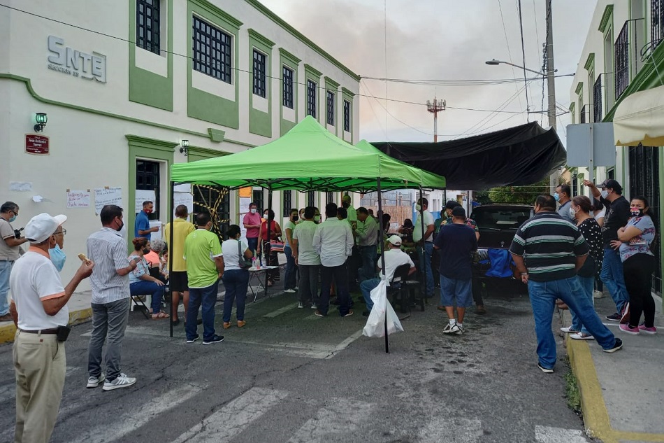 Integrantes de la Sección 39 del Sindicato Nacional de Trabajadores de la Educación (SNTE) que mantienen un plantón afuera de las oficinas sindicales, pidieron al secretario general, Heriberto Valladares Ochoa, que les dé por escrito los resultados de los requerimientos a favor de los agremiados y le exigieron que de no ser así se separe de su cargo para dar paso al Comité Ejecutivo Nacional del SNTE y dé solución a las demandas y protección a los derechos laborales de la clase magisterial.