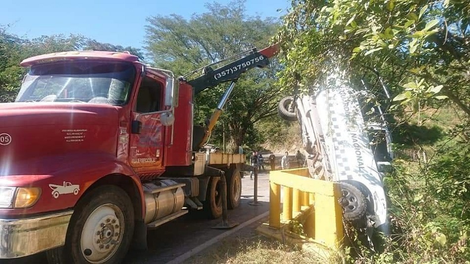 Casimiro Castillo, Jal. Un elemento de la Guarda Nacional falleció y seis más resultaron lesionados este domingo luego que la patrulla en que viajaban volcó, cayendo de un puente de más de 10 metros de profundidad cuando realizaban recorridos de vigilancia en el municipio de Casimiro Castillo, Jalisco.