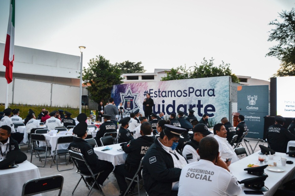 El Alcalde de Colima, Leoncio Morán Sánchez, festejó y reconoció a las y los agentes de la Policía Municipal de Colima, en el marco del Día del Policía y del Agente de Tránsito, a conmemorarse el próximo 22 de diciembre.