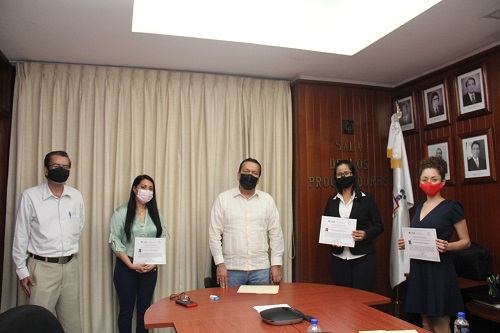 En este sentido, los facilitadores que recibieron su renovación de certificación, expresaron su agradecimiento al Fiscal General del Estado por brindar las facilidades de capacitación y profesionalización. En esta ocasión recibieron su renovación: Itza Yahimé Cárdenas Contreras, Jennifer Samantha Vallejo Chávez, Norma Angélica Díaz Malta, Miguel Ángel Salgado Paz, Briseida Viridiana Gaspar Vázquez, Ana Mireya Chávez Cruz, Jair Omar Figueroa Moreno, Alicia Elizabeth Mendoza Ángulo y Alma Nayeli Pimentel Sandoval, titular de la Dirección de Soluciones Alternas de la FGE.