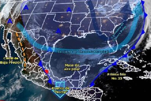Para hoy sábado se pronostica que la masa de aire frío que originó al frente No. 23, empiece a modificar sus características térmicas.