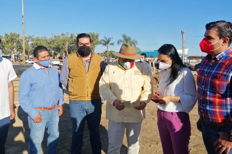 Villa de Álvarez, Col. La aspirante a precandidata a la gubernatura por el Partido Revolucionario Institucional (PRI), Mely Romero Celis, visitó la construcción de la tradicional plaza de toros La Petatera, en Villa de Álvarez.