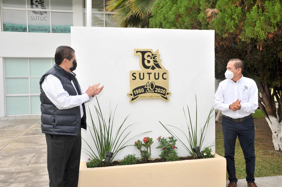 Al develar la placa conmemorativa por los 40 años de vida del Sindicato Único de Trabajadores de la Universidad de Colima (SUTUC), este jueves, el rector José Eduardo Hernández Nava resaltó que a lo largo de estas cuatro décadas “de unidad y lealtad institucional, se ha forjado un vigoroso sistema de solidaridad y derecho sindical, logrando la mejora salarial, nuevas prestaciones y beneficios para los trabajadores y sus familias de manera constante, año con año”.