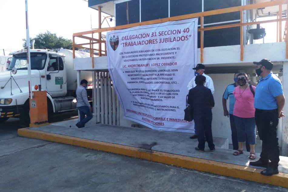 Un grupo de trabajadores jubilados y pensionados de Petróleos Mexicanos (PEMEX), se manifestaron pacíficamente a las afueras de las instalaciones de la paraestatal, ubicadas en la comunidad de Rancho de Villa, para exigir el respeto a sus derechos laborales y que de inmediato, se reactive su acceso a servicios médicos integrales.