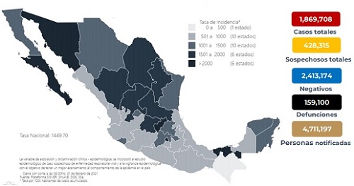 Hasta el momento se tienen 428 mil 315 casos sospechosos totales y 19 mil 506 defunciones sospechosas.
