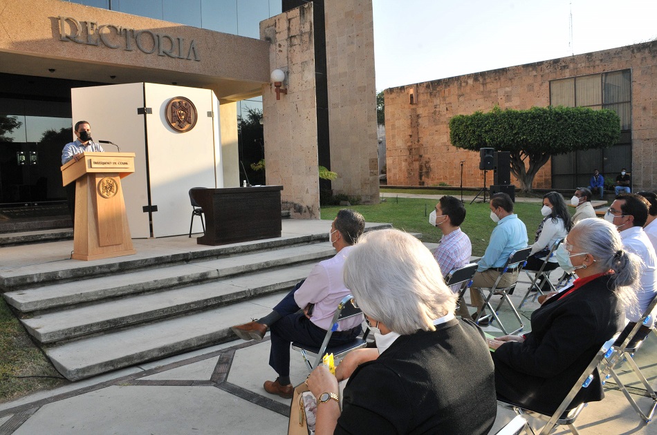 Este acto se realizó en la explanada de rectoría para cuidar las medidas sanitarias. Las funcionarias y funcionarios nombrados son los siguientes: