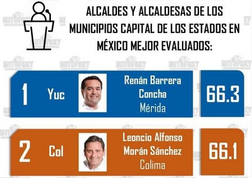 El Alcalde de Colima, Leoncio Morán Sánchez, compartió a través de su cuenta de Facebook, los resultados que hizo pública la empresa Consulta Mitofsky, respecto al ranking que evalúa a las y los mejores Alcaldes del país.