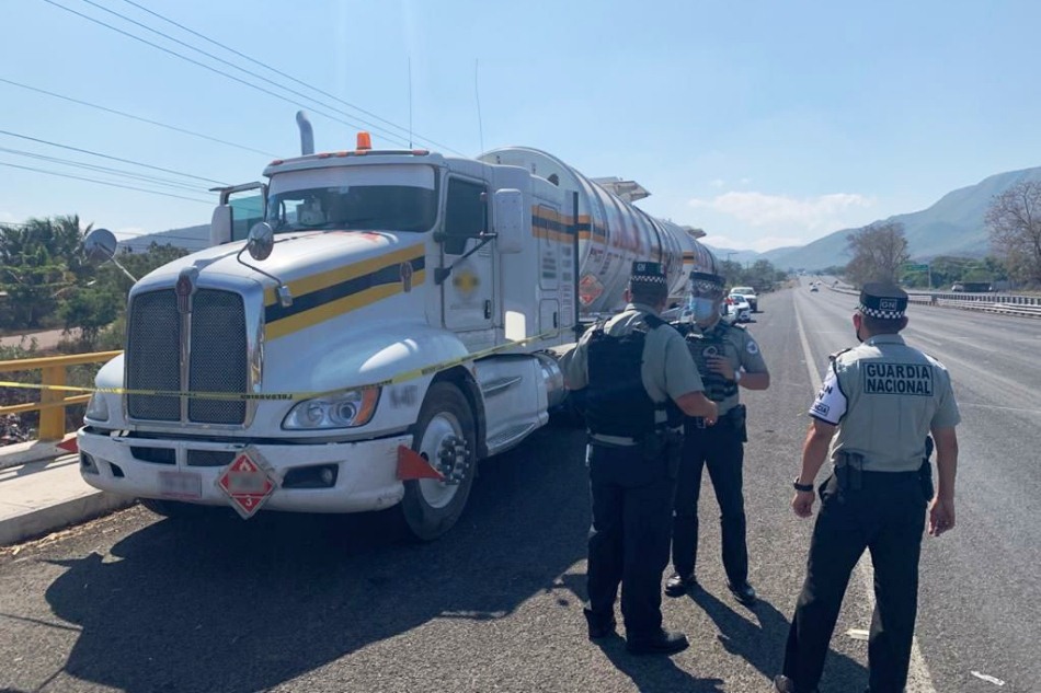 A la altura del kilómetro 013+400 de la carretera (530) Colima-Entronque Tecomán localizaron el tractocamión acoplado a un semirremolque y remolque tipo tanque, estacionado sobre el acotamiento, con las luces intermitentes encendidas y con una manguera conectada en el semirremolque.