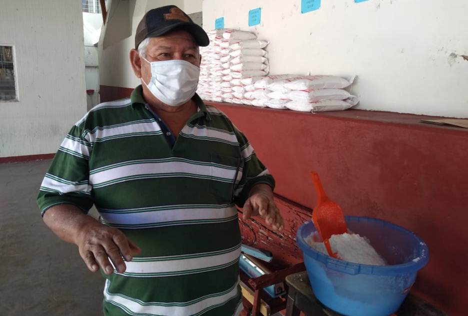 Mario Jiménez aseguró que la pandemia por Covid no ha afectado la producción salinera, ya que hemos tomado todas las medidas sanitarias recomendadas por las autoridades de salud, “además que andamos a una distancia de más de 50 metros entre cada persona, debido a que tenemos un área muy grande para trabajar”.