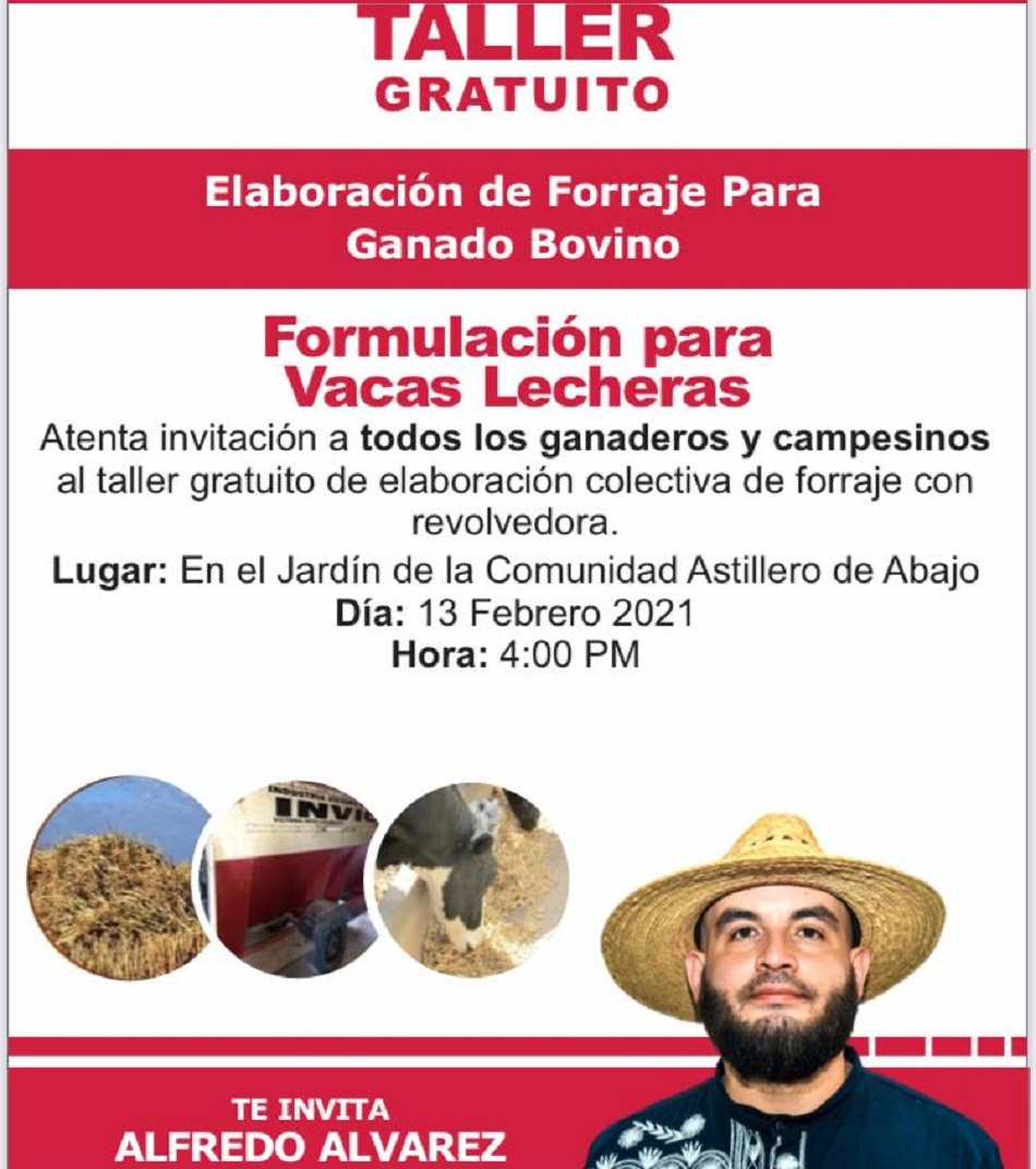 Con el objetivo de que los ganaderos aprendan a producir su propio alimento para sus animales con insumos locales, se realizará un taller gratuito de elaboración de forraje para ganado bovino.