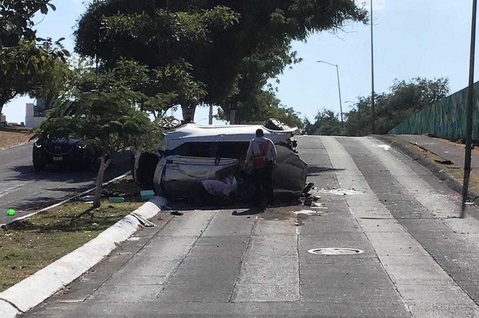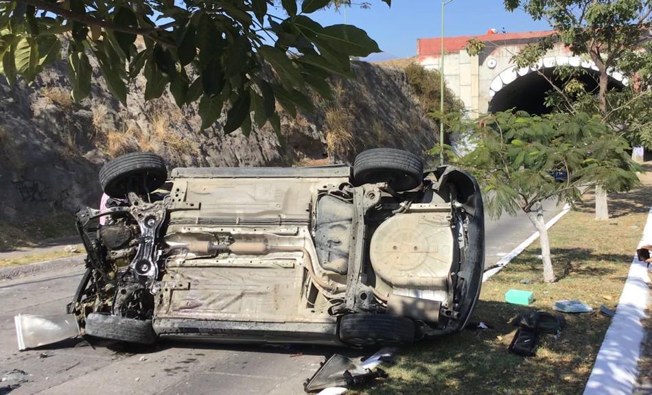 Daños materiales de consideración y una persona con lesiones consideradas como leves, fue el saldo de la voladura de un automóvil ocurrida este jueves en la curva para ingresar del Tercer Anillo periférico a la avenida Ignacio Sandoval.