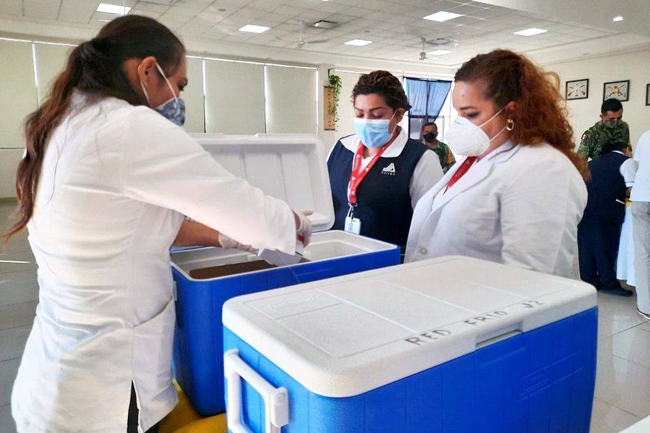 Se trata de 5 mil 630 dosis, las cuales fueron trasladadas del aeropuerto ubicado en el municipio de Cuauhtémoc a las instalaciones del 29 Batallón de Infantería, custodiadas por personal de la Secretaría de la Defensa Nacional para su resguardo.