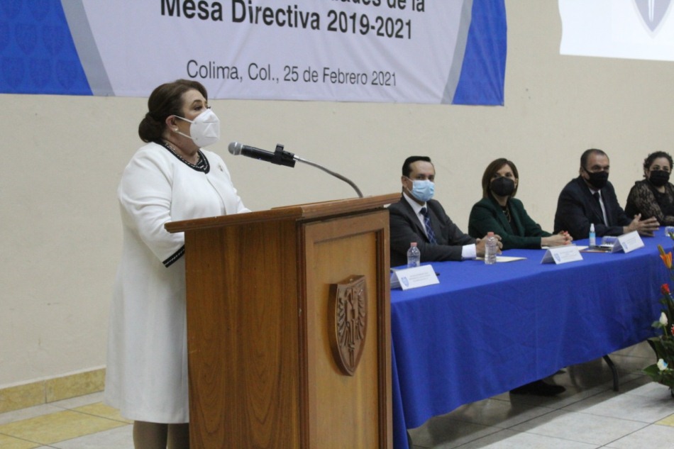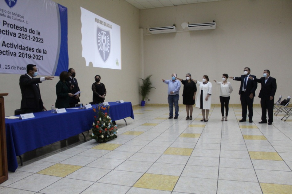 La titular de la Secretaría de Salud y Bienestar Social, Leticia Guadalupe Delgado Carrillo, tomó protesta a la mesa directiva 2021-2023 del Colegio de Médicos del Estado de Colima, la cual es presidida por Cristina Bayardo Quesada, la primera mujer en ser presidenta de este gremio médico.