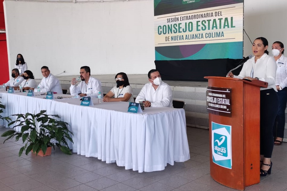 Dicho evento del Consejo Político Estatal de Nueva Alianza Colima, estuvo presidido por su dirigente Francisco Javier Pinto Torres y del delegado de Morena en Colima, Hirepan Maya Martínez.