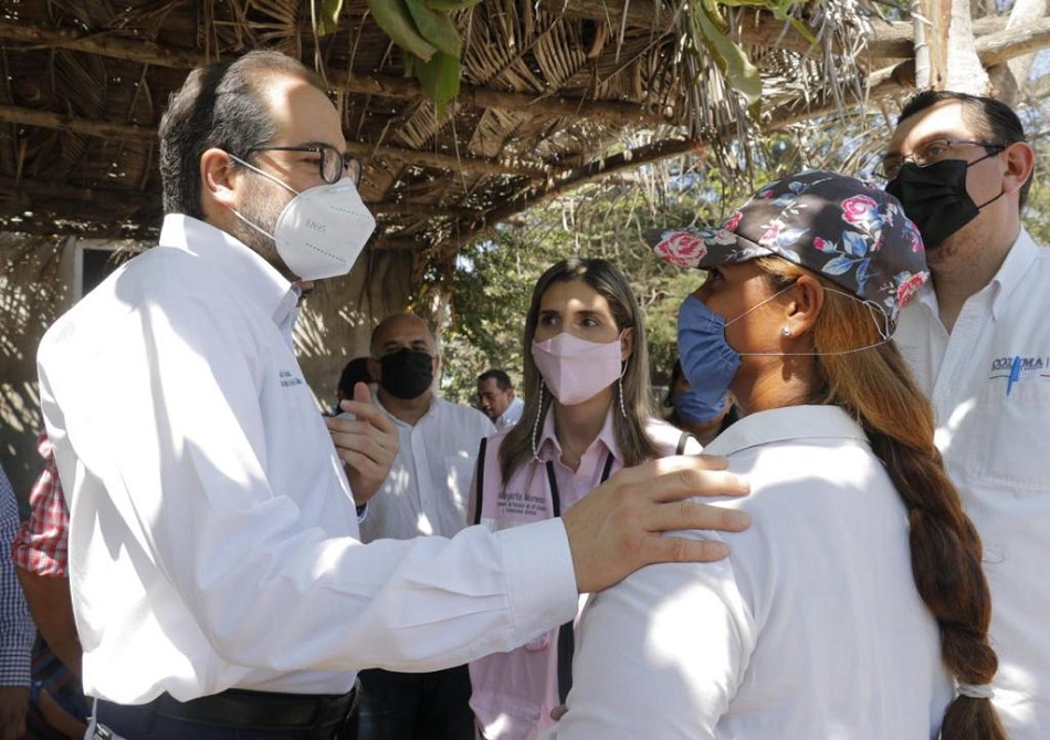 Manzanillo, Col. En gira de trabajo por el municipio de Manzanillo, el gobernador José Ignacio Peralta Sánchez hizo entrega de paquetes de ropa, calzado, blancos y telas a damnificados de las comunidades de La Culebra, Río Marabasco y El Centinela.
