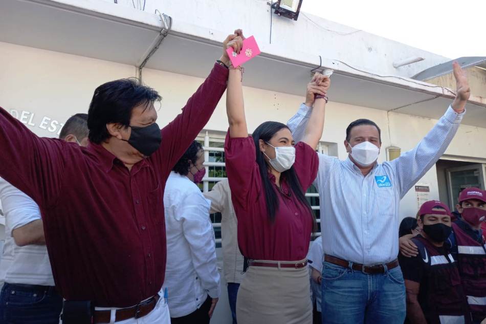 Acompañada de los dirigentes de Morena y Nueva Alianza, y de un poco más de 200 simpatizantes, que marcharon de la Glorieta del Rey Colima a las oficinas del Instituto Electoral del Estado de Colima, donde Indira Vizcaíno fue registrada como candidata a la Gubernatura del Estado y asumió el compromiso “de actuar con legalidad y apegada al Pacto por Democracia al que convocó el presidente Andrés Manuel López Obrador”.