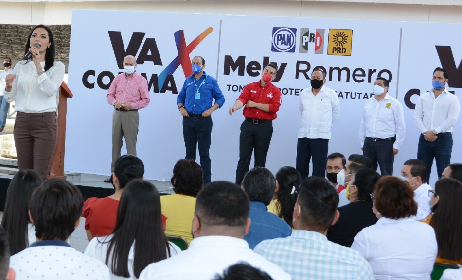 En su mensaje, la candidata a la gubernatura de la coalición Va por Colima, Mely Romero, resaltó que su candidatura es respaldada por los tres partidos más importantes de México y que conforman un esfuerzo pensado por el bien de todos los mexicanos.