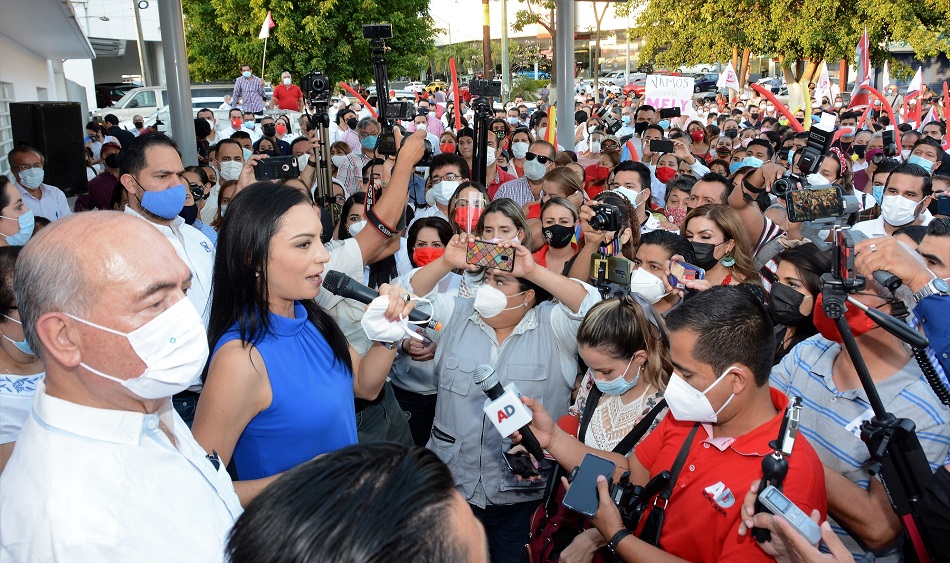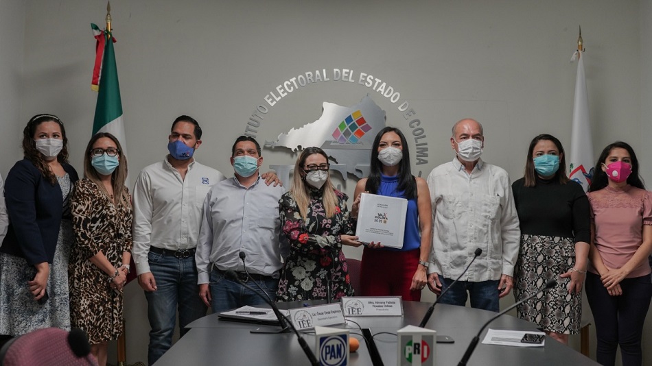 Ante el júbilo de panistas, priistas y perredistas, la abanderada de la coalición Va por Colima se comprometió como candidata “a llevar una campaña con estricto apego a la normatividad y a la legislación electoral. Anhelo que sea este Instituto (Electoral del Estado) el que nos guíe en todo el proceso electoral para que se lleve con estricto apego a la legalidad”.