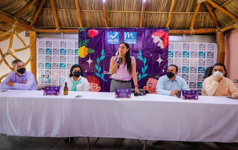 Ante alrededor de 30 mujeres aliancistas y acompañada por la Coordinadora Estatal del Movimiento de Mujeres y el presidente de Comité de Dirección Estatal, Myriam Gudiño Espíndola y Francisco Javier Pinto Torres, respectivamente, Vizcaíno Silva señaló que la sociedad debe comprometerse a garantizar igualdad para las mujeres.