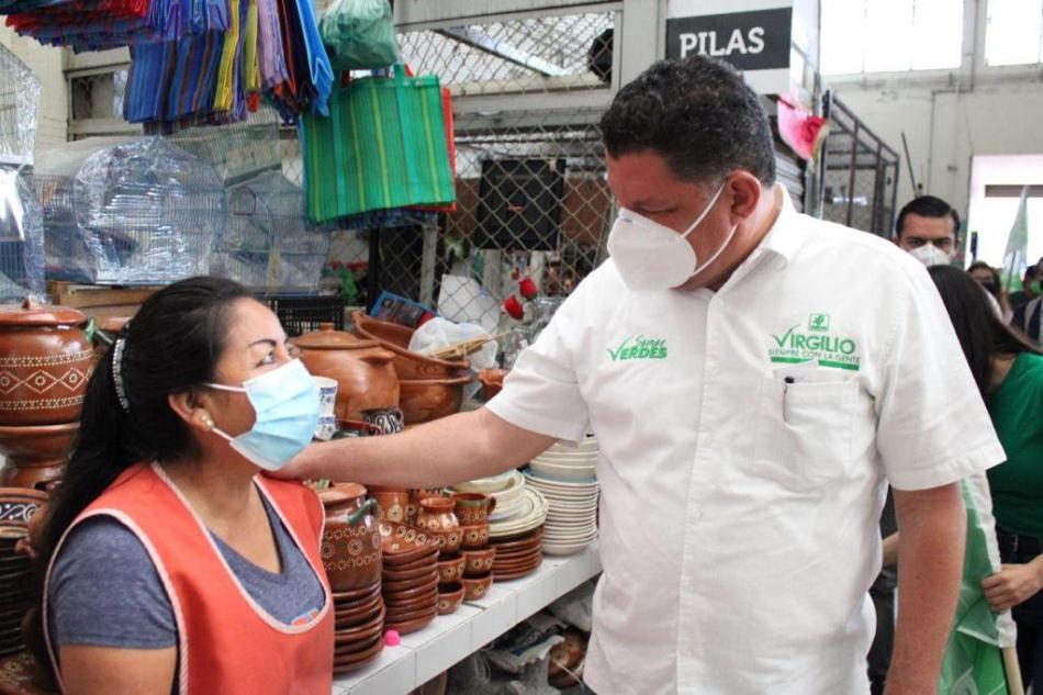 Virgilio Mendoza Amezcua candidato a gobernador por el Partido Verde Ecologista de México, reafirmó su compromiso de modernizar y rehabilitar los mercados del Estado, esto en equipo con sus locatarios con quienes trabajará hombro con hombro.