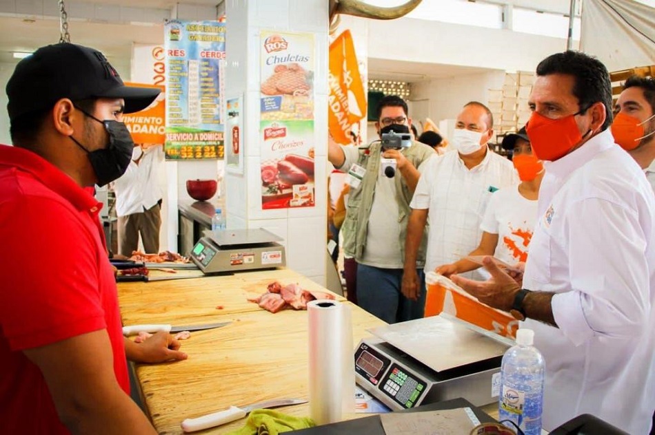 Durante su recorrido en la cabecera municipal de Armería, Locho Morán estuvo acompañado de su coordinador distrital federal Paco Cuevas y de los coordinadores municipales, Ernesto Márquez, Laura Espíritu y Annett Tapia.