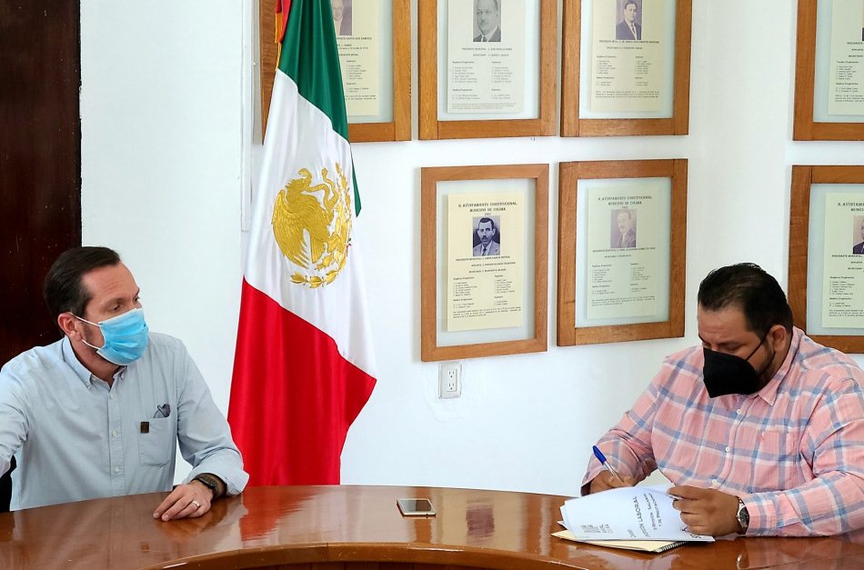 El secretario general del Sindicato Único de Trabajadores al Servicio del DIF Municipal Colima (SUTSDIFMC), Vladimir Verduzco Espinosa, y el presidente municipal interino de Colima, Javier Llerenas Cobián, firmaron el convenio de concertación laboral para dar certeza a los sindicalizados.