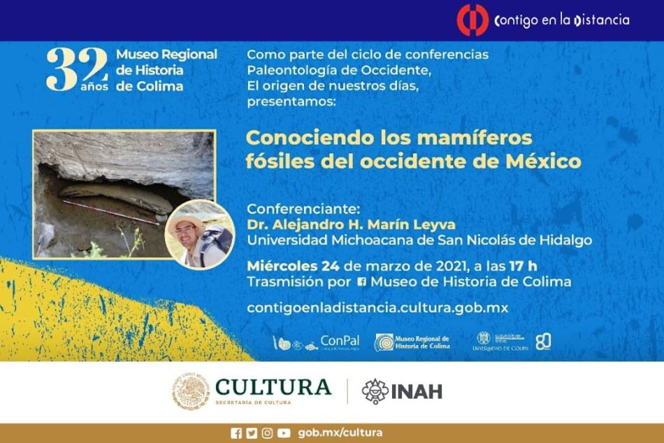 Este mes de marzo culmina la serie de conferencias El origen de nuestros días. Paleontología de occidente, organizada por el Museo Regional de Historia de Colima en coordinación con el Centro INAH Colima y la Universidad de Colima, con motivo de la celebración de su 32° aniversario, ocurrido en noviembre de 2020.
