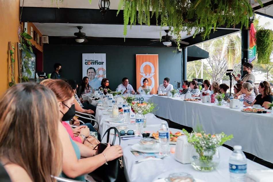 Manzanillo, Col. El candidato de Movimiento Ciudadano al Gobierno del Estado, Locho Morán, en reunión con un grupo de mujeres empresarias y líderes sociales, se comprometió en crear incentivos fiscales y crediticios en favor de las mujeres que encabecen y/o emprendan un negocio.