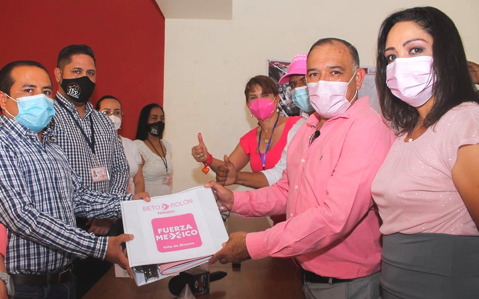 Villa de Álvarez, Col. Claudia Yáñez, candidata a la gubernatura del estado de Colima, acompañó a Roberto Rolón este viernes en su registro como candidato a la presidencia municipal de Villa de Álvarez, en presencia de Rigoberto García Negrete, presidente del partido Fuerza por México en el estado y decenas de simpatizantes y militantes del partido nacional, que a ritmo de batucada festejaron ruidosamente el acto cívico, atendiendo los protocolos sanitarios.