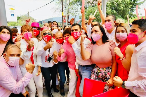 Acompañados por la candidata a la gubernatura del estado, Claudia Yáñez Centeno y Cabrera, Yolanda Verduzco Guzmán y Sonia López Verde, candidatas a las diputaciones federales por el I y II Distrito, respectivamente, el dirigente estatal de este instituto político Rigoberto García Negrete entregó a la presidenta del Consejo General del Instituto Electoral Estatal (IEE) las solicitudes correspondientes.
