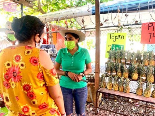 Villa de Álvarez, Col. Durante su recorrido por la Av. Benito Juárez, en Villa de Álvarez, Karina Heredia, candidata del Partido Verde Ecologista de México, a la Presidencia Municipal, platicó con los comerciantes de dicha avenida quienes le hicieron saber su condición económica actual, como consecuencia de la pandemia. Ante esto, Karina Heredia se comprometió a trabajar de la mano para que los comercios del municipio puedan reactivarse, así como a gestionar apoyos económicos y capacitaciones.