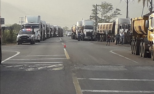 Coahuayana, Mich. En el municipio, este miércoles por la mañana un grupo de operadores de tráileres de empresas contratistas de Ternium, están bloqueando el paso a los tracto camiones que acarrean el fierro de la mina de Aquila, para exigir que se permita regresar a trabajar a 13 conductores que fueron suspendidos por conducir con exceso de velocidad, lo que en los últimos días ha originado de accidentes donde se han visto involucrados vehículos de la transportista de la empresa Zapotilteco, lo que obligó a a minera a activar sus protocolos de prevención en atención a la demanda de la población en general e intentar prevenir un hecho de lamentables consecuencias.