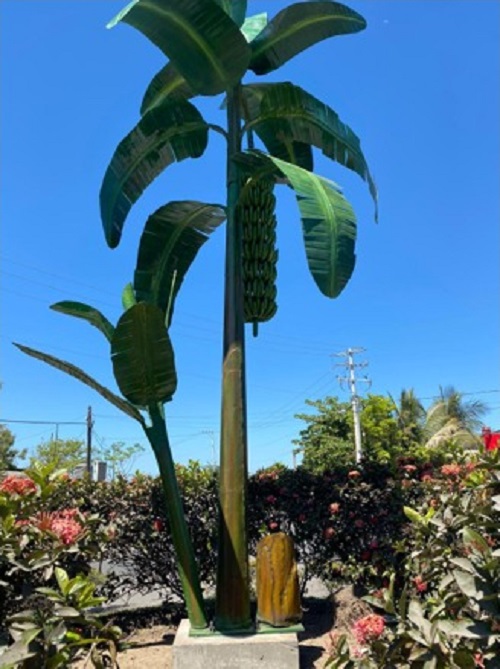 Coahuayana, Mich. Este martes, el presidente de la Asociación Agrícola Local de Coahuayana de Hidalgo, Productores de Plátano, Hugo González, con gran alegría y júbilo participó a la población en general, la instalación en la glorieta de San Vicente, del monumento dedicado al cultivo de plátano, una obra artística hecha con una aleación metálica asemejando una planta de bananas con un racimo, como un homenaje al sector platanero que a la vez sirva para dar identidad al municipio de su principal actividad económica y agropecuaria, que los hace Orgullosamente plataneros.