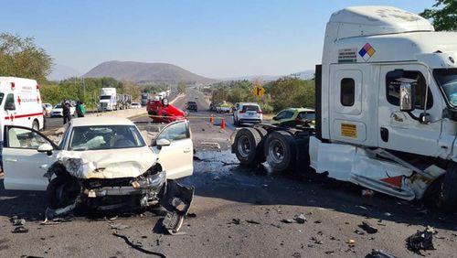 De acuerdo a los primeros reportes, un tráiler que circulaba con sentido de Manzanillo a Tecomán, impactó a dos vehículos particulares; primero a un Nissan tipo March color rojo, provocando que se volcara y posteriormente un Audi A1 color blanco, para concluir chocando contra el muro de contención.