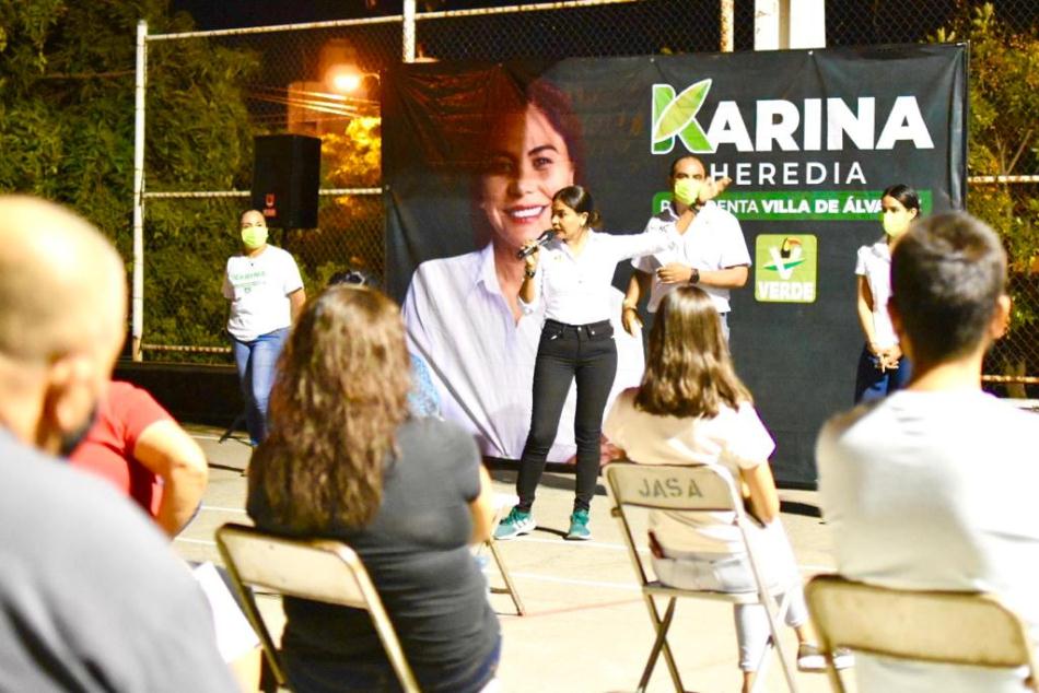 Villa de Álvarez, Col. La candidata del Partido Verde Ecologista de México (PVEM) a la presidencia municipal de Villa de Álvarez, Karina Heredia Guzmán, visitó la colonia Punta Diamante, en donde se comprometió a regularizar el tema de los camiones recolectores de basura de otros municipios que llevan la basura al Relleno Sanitario en Villa de Álvarez.