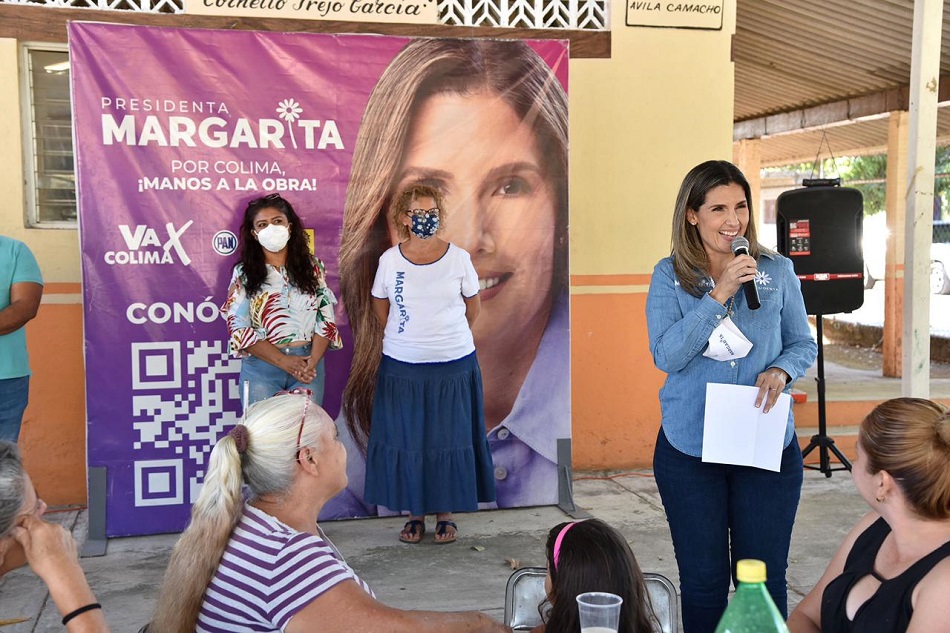 Margarita Moreno, candidata a presidenta municipal de Colima, aseguró que cada semana estará presente en una comunidad rural, ya que su gobierno será de puertas abiertas y cercano a las personas.