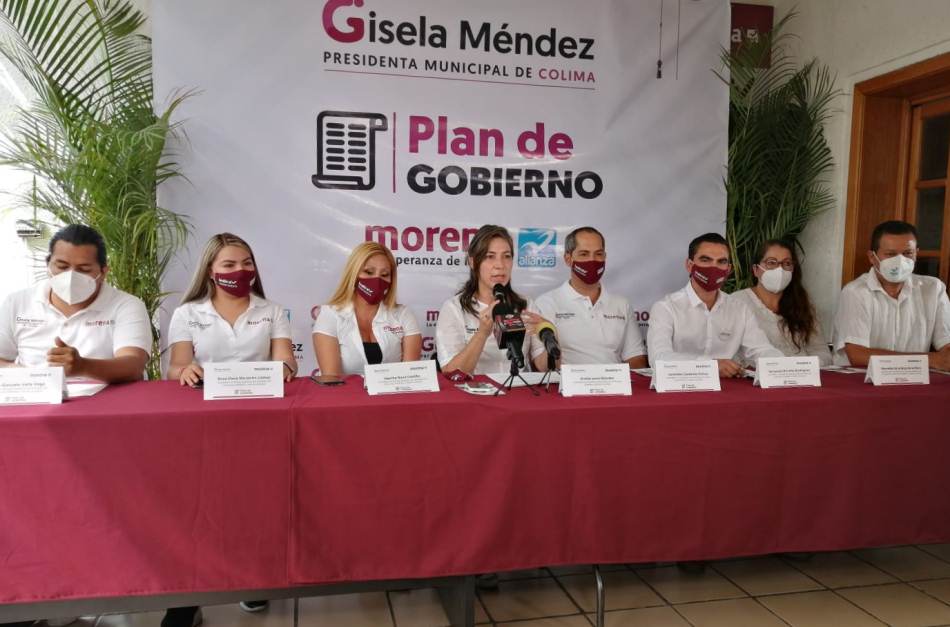La candidata de la coalición Morena-Nueva Alianza a la Presidencia Municipal de Colima, Gisela Méndez, presentó en conferencia de prensa este martes desde casa de campaña su Plan de Gobierno 2021-2024 y a quienes integran la planilla al Cabildo Capitalino, donde converge un objetivo común: la misión de transformar en equipo al municipio, para brindar bienestar y mejores condiciones de vida a todas y todos los habitantes de Colima, haciendo una gestión honesta y transparente, acercando el gobierno al pueblo y mejorando los servicios públicos básicos.