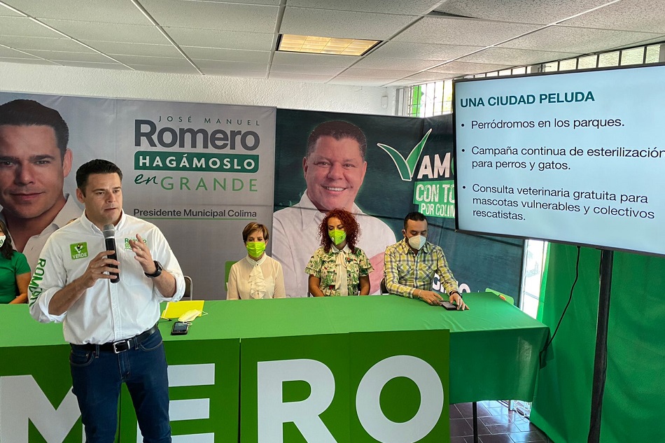 El candidato a la Alcaldía de Colima, José Manuel Romero Coello, detalló el segundo eje rector de sus propuestas de gobierno “Hagamos Una Ciudad Verde”, en donde destaca la creación de perródromos en los parques.