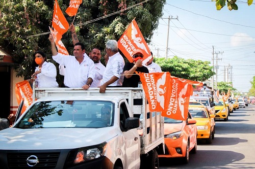 Al finalizar, el candidato a la gubernatura por MC realizó un recorrido sobre las principales calles y avenidas del municipio de Tecomán acompañado de los candidatos Paco Cuevas por el distrito 02 federal, Roberto Verduzco por la alcaldía, Paco Espinoza por el distrito 10, Marisela García distrito 15 y Emiliano González distrito 16, donde se pudo palpar por parte de la ciudadanía, las muestras de apoyo y simpatía con los candidatos de Movimiento Ciudadano