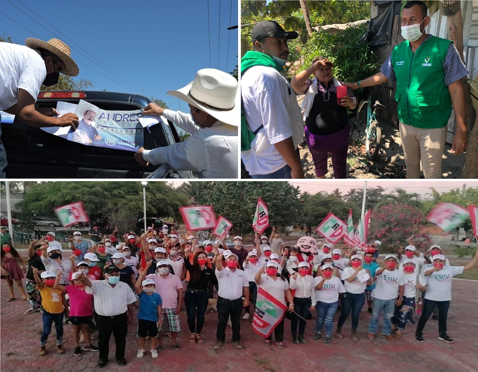 COAHUAYANA, Mich. Este domingo, militantes y simpatizantes del PAN salieron a las calles, avenidas y cruceros de los pueblos coahuayanenses a invitar a la gente a votar el próximo 6 de junio “por la opción de la experiencia que sabe gobernar”, por el candidato a presidente municipal de Coahuayana, Andrés Cárdenas, quien encabezó la movilización dominical de los panistas.