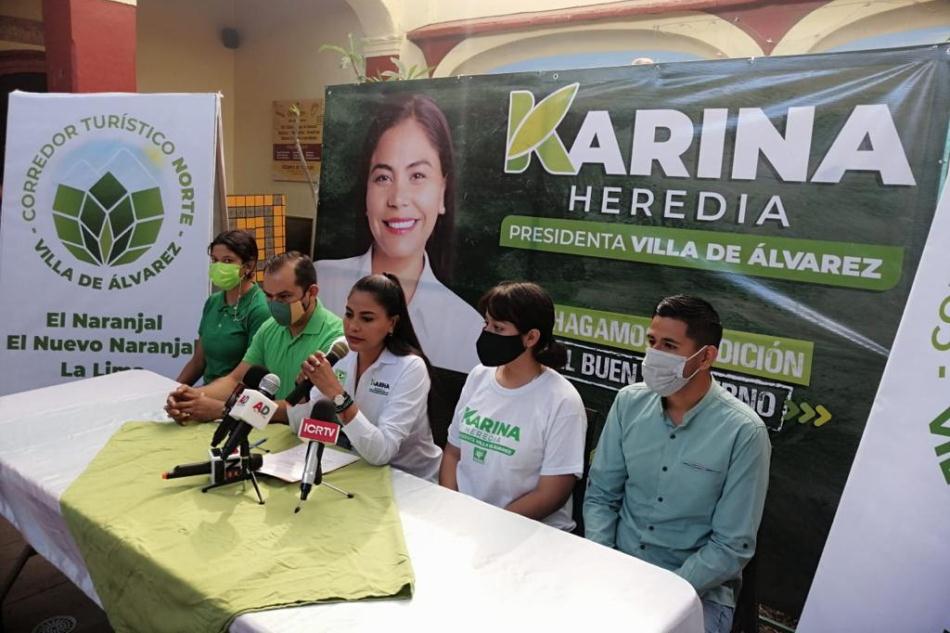Villa de Álvarez, Col. La candidata del Partido Verde Ecologista de México (PVEM) a la presidencia municipal de Villa de Álvarez, Karina Heredia Guzmán, presentó el proyecto para detonar el sector turístico- económico de las comunidades del municipio villalvarense, a través de dos corredores turísticos, uno al norte y otro al poniente de la ciudad.