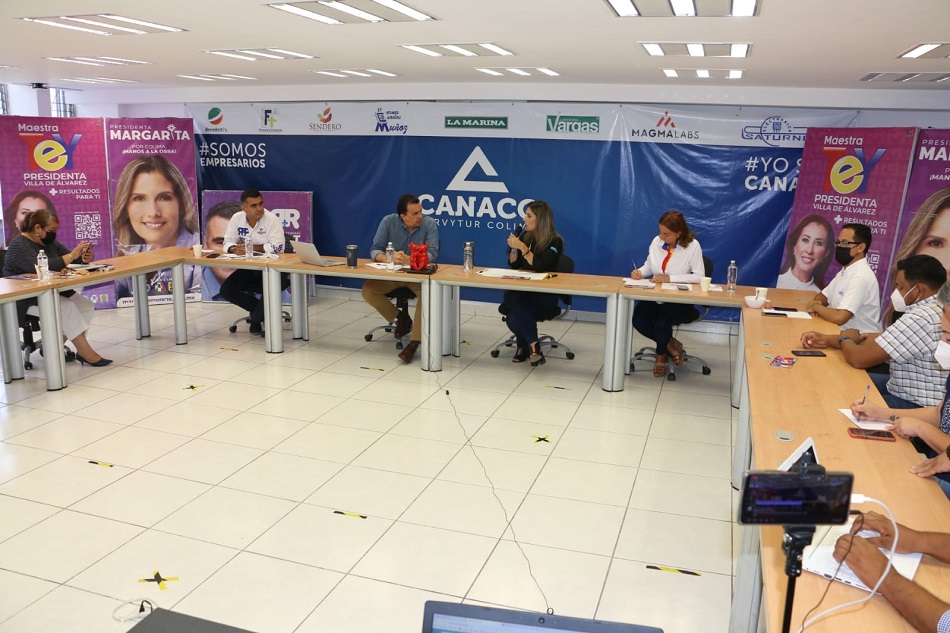 En reunión de trabajo con empresarios integrantes de la Canaco Servtur, encabezados por su presidente, Luis Hurtado Anguiano, la candidata presentó su eje: "Colima Próspero", en el que se contemplan acciones de apoyo a las empresas locales, la reducción de trámites en los procesos ante el Ayuntamiento a través de herramientas tecnológicas, así como proyectos que incentiven la inversión, en todos los niveles.