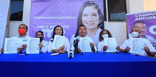 Tecomán, Col.- La candidata de la Coalición “Va por Colima” al Gobierno del Estado, Mely Romero Celis, firmó el documento ‘Diez acciones dentro de los primeros 100 días’, impulsada por el candidato a presidente municipal de Tecomán, Sergio “Chamuco” Anguiano, como una forma de acreditar que gobernará de manera cercana con la población y trabajará coordinadamente con los 10 ayuntamientos del estado para atender las necesidades de la población.