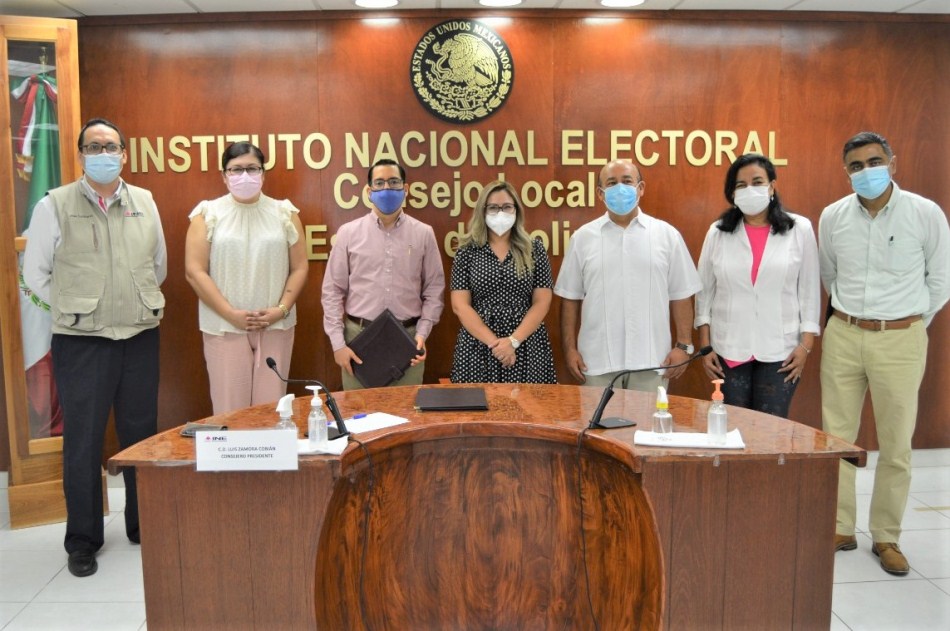 Durante la firma del convenio, también estuvieron presentes el Vocal Secretario de la Junta Local, Salvador Contreras González y las Consejeras del Consejo Local, Gloria Guillermina Araiza Torres e Isela Guadalupe Uribe Alvarado.