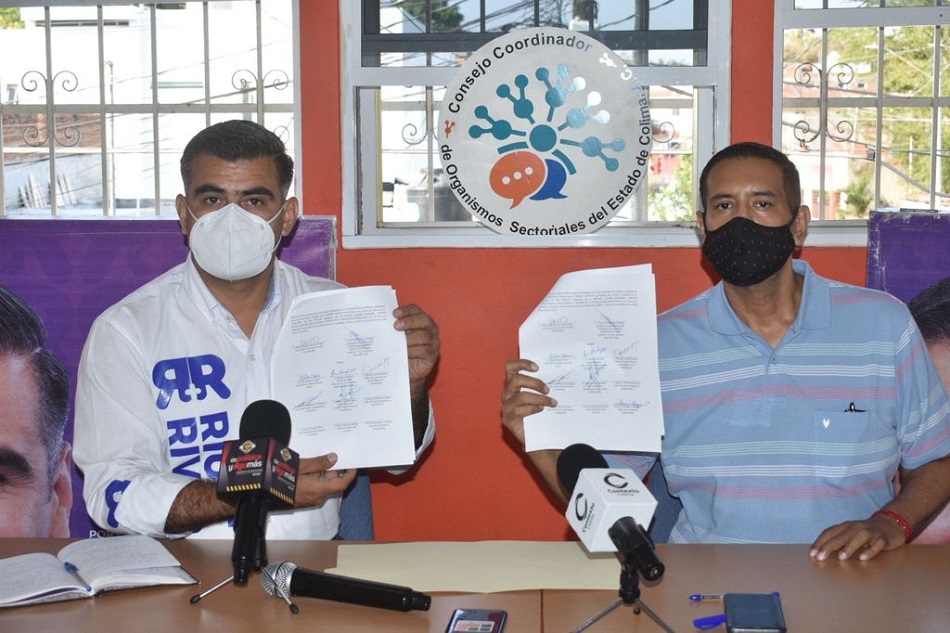 Riult Rivera Gutiérrez, Candidato a Diputado Federal de la Coalición “Va por Colima”, firmó la carta compromiso del Consejo Coordinador de Organismos Sectoriales (CCOS), en la que asume su respaldo desde la Cámara de Diputados Federal a las iniciativas y proyectos que surjan del Consejo Coordinador.
