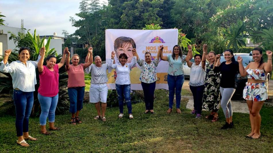 Sin protocolos, sin formalidades, pero si con su palabra empeñada, su voluntad plena y la total convicción de hacer lo correcto, lo más bueno para Coahuayana y los coahuayanenses, unidas, Georgina Martínez, Irene García, Enriqueta Orozco, Janeth Muñiz, Juana Iris González, Rafaela Mendoza, Celeste Valdovinos, Rosa Urania Orozco, Pahola Mejía, Cecilia Chávez e Isabel Hernández, todas las cuales patentizaron su apoyo absoluto a la maestra Socorro Bueno y se comprometieron a promocionar a la candidata del pueblo de Coahuayana, pero sobre todo, a votar el 6 de junio por el PRD para llevarla a ser la primera mujer presidenta municipal.