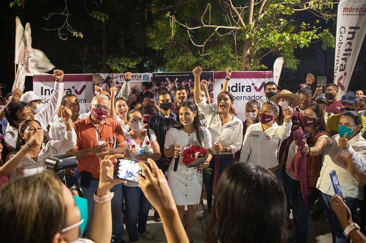 En tanto era atacada con argumentos inverosímiles por quienes disputan el segundo lugar de las preferencias electorales, Indira Vizcaíno se mantuvo en la línea sostenida a lo largo del proceso electoral, como candidata de las propuestas que escucha a la población, presenta Plan de Gobierno 2021-2027 y hace anuncios de programas inmediatos, la abanderada que exhorta a las mujeres y hombres de Colima en no caer en provocaciones ni creer mentiras, y sobre todo ser la candidata que busca restaurar la paz que tanto ansiamos.
